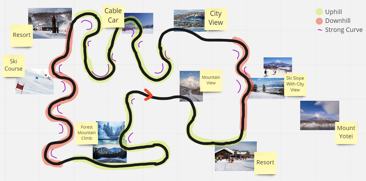 One thing we always try to make clear in our World Tour progression is the hierarchy of difficulty and complexity. For this reason, the first track of a country is considerably easier and simpler than its last, at the same time that Japan as a country is designed to be harder and more complex than the USA - showing why one is the first and the other is the last country of our progression.