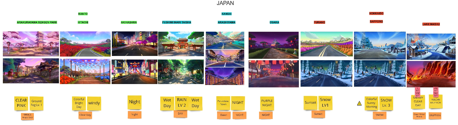 We started working in Japan with a different idea of how it would actually be published. We divided it into three sections (south, center, and north), but Lake Mashu was not meant to be the final track. Originally the volcano wouldn’t be active, but the concept team made such compelling work on showing the advantages of it that it wasn’t possible to move forward without using it as “the final challenge”. There’s something about racing inside an active volcano that makes this stage the perfect ending for our adventure.